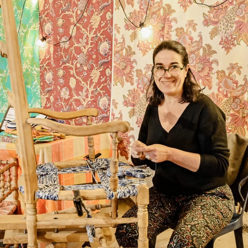 Bérengère Bagage, rempailleuse de chaises, entame en 2019 une reconversion vers le métier de peintre sur mobilier en peinture naturelle. Elle complète ensuite sa formation en apprenant le rempaillage de chaises en torons de tissus.