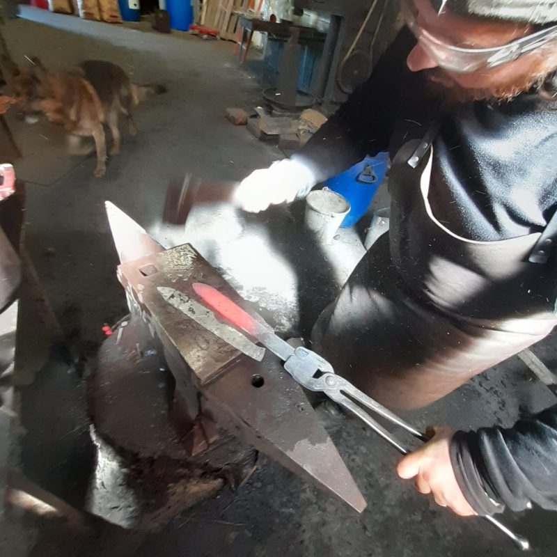 En 2017, il suit donc une formation de 18 mois à Roumegoux dans le Tarn, durant laquelle il apprend le métier de la coutellerie, la taillanderie et la métallurgie artisanale : la connaissance des aciers, leurs propriétés et les associations possibles, la forge ainsi que les traitements thermiques associés.