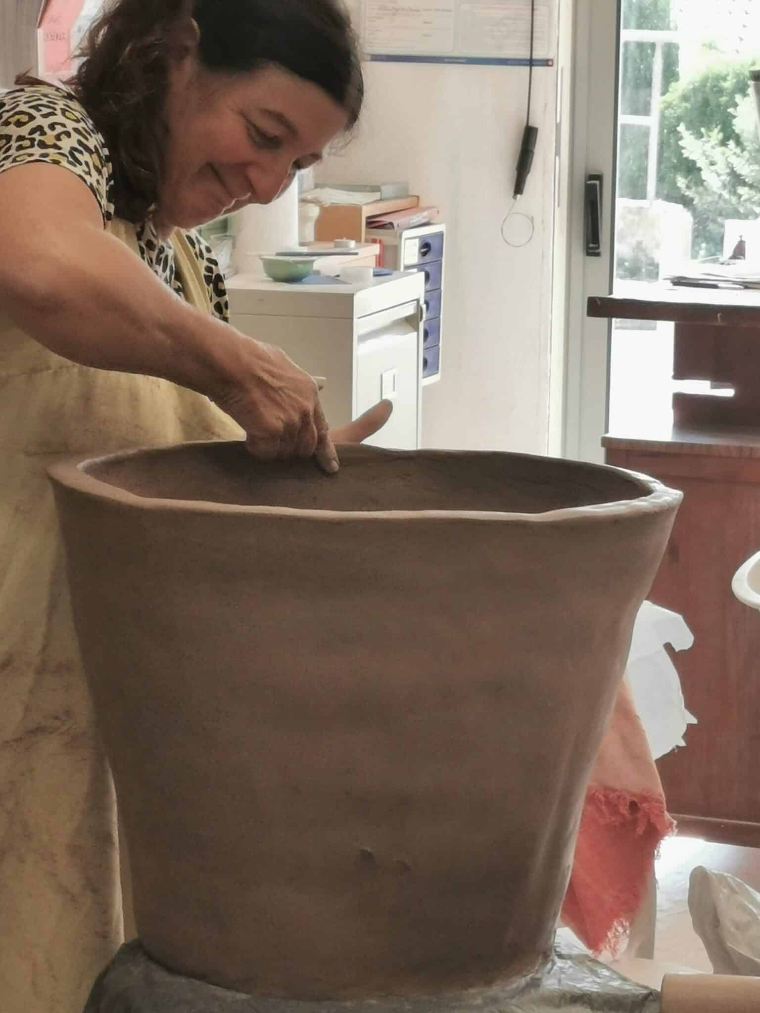 Marie Kazazian, céramiste à Gardanne depuis les années 1990 et formatrice professionnelle en céramique depuis 2003, spécialisée dans le modelage de l’argile sans tour.