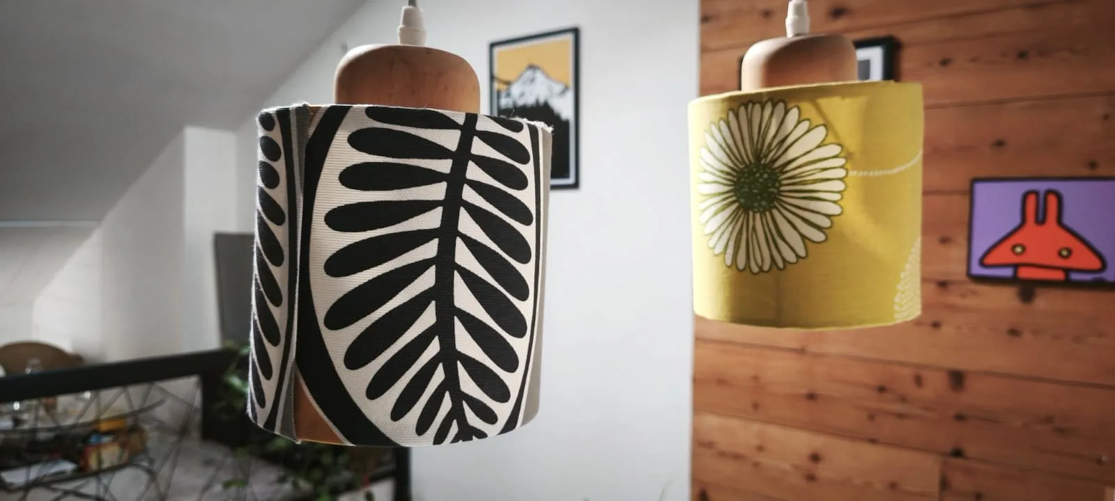 A la fin de l'atelier, vous repartez avec votre création : votre propres abat-jour. Vous pouvez venir avec votre tissu ou bien choisir parmi les tissus d'ont Frédéric dispose dans son atelier