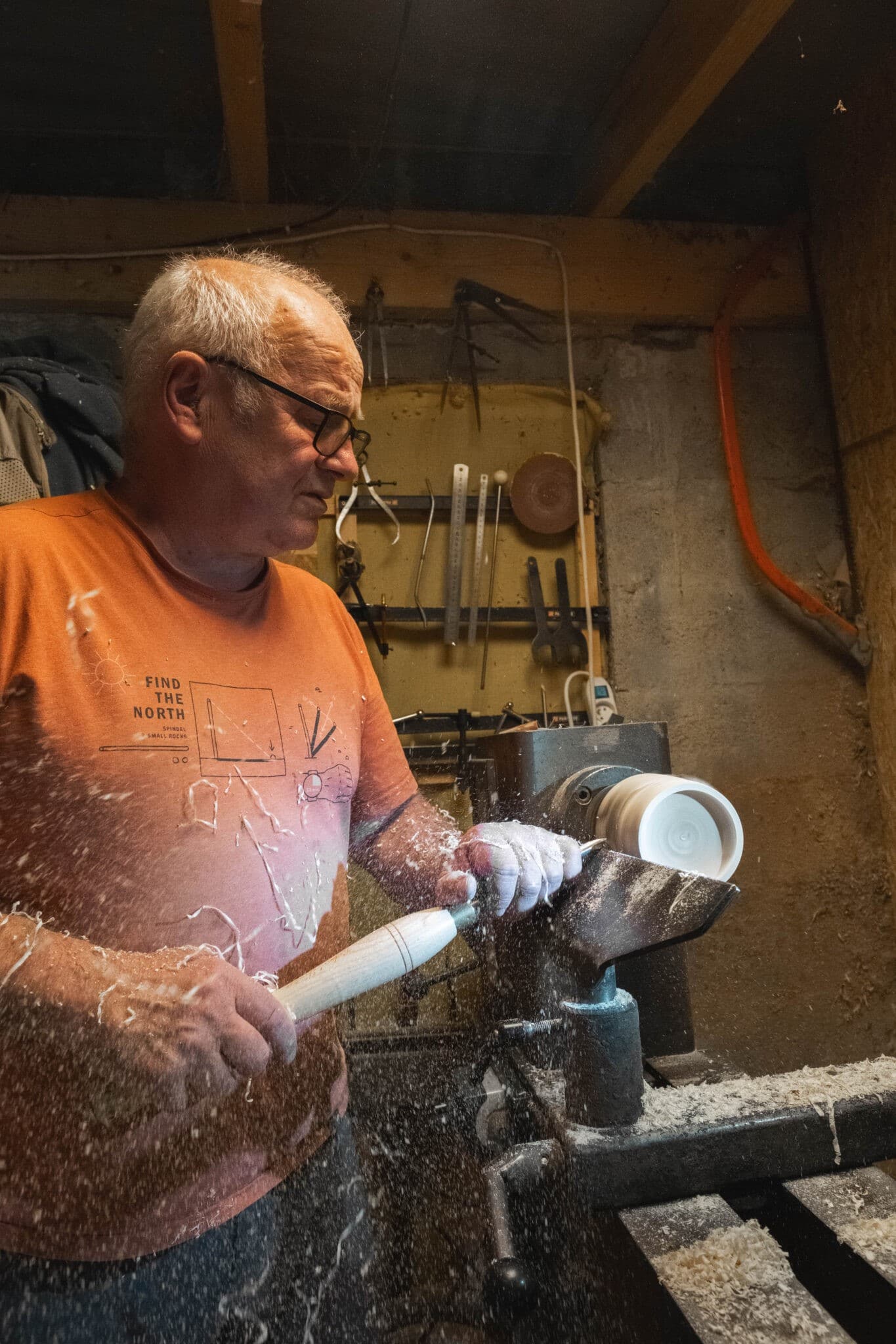 Pascal Christophel est artisan tourneur sur bois depuis les années 2010. Formé progressivement, d’abord en autodidacte puis auprès de références majeures du tournage à l’école Escoulen (Alain Mailland, Yann Marot, Romuald Clémenceau). Il a ainsi enrichi sa pratique par le tournage d’art au sein de l’AFTAB.